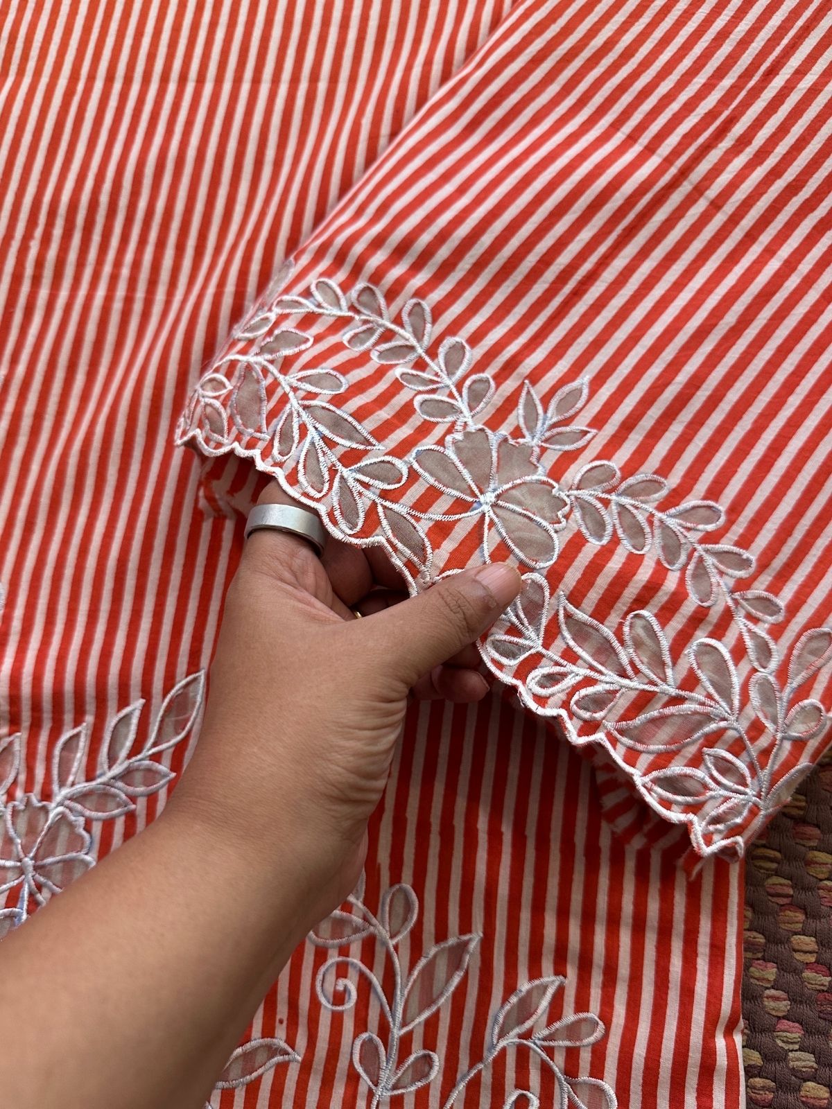 Pure Cotton Handblocked Coord Set With Cutwork Embroidery