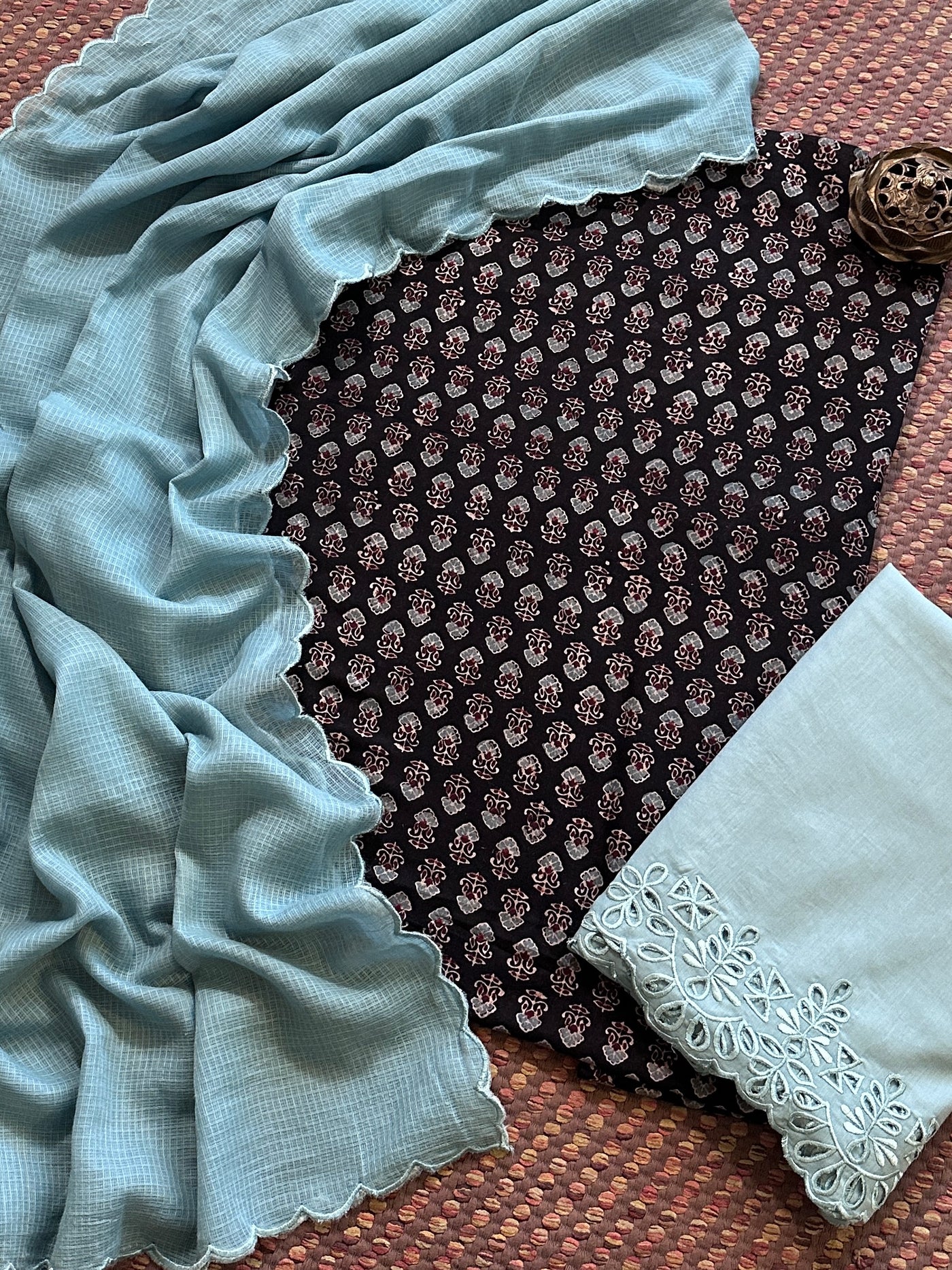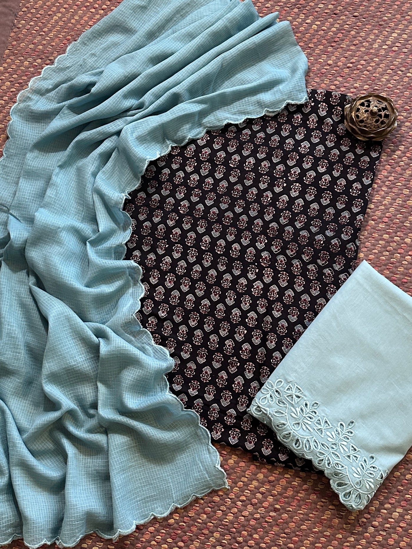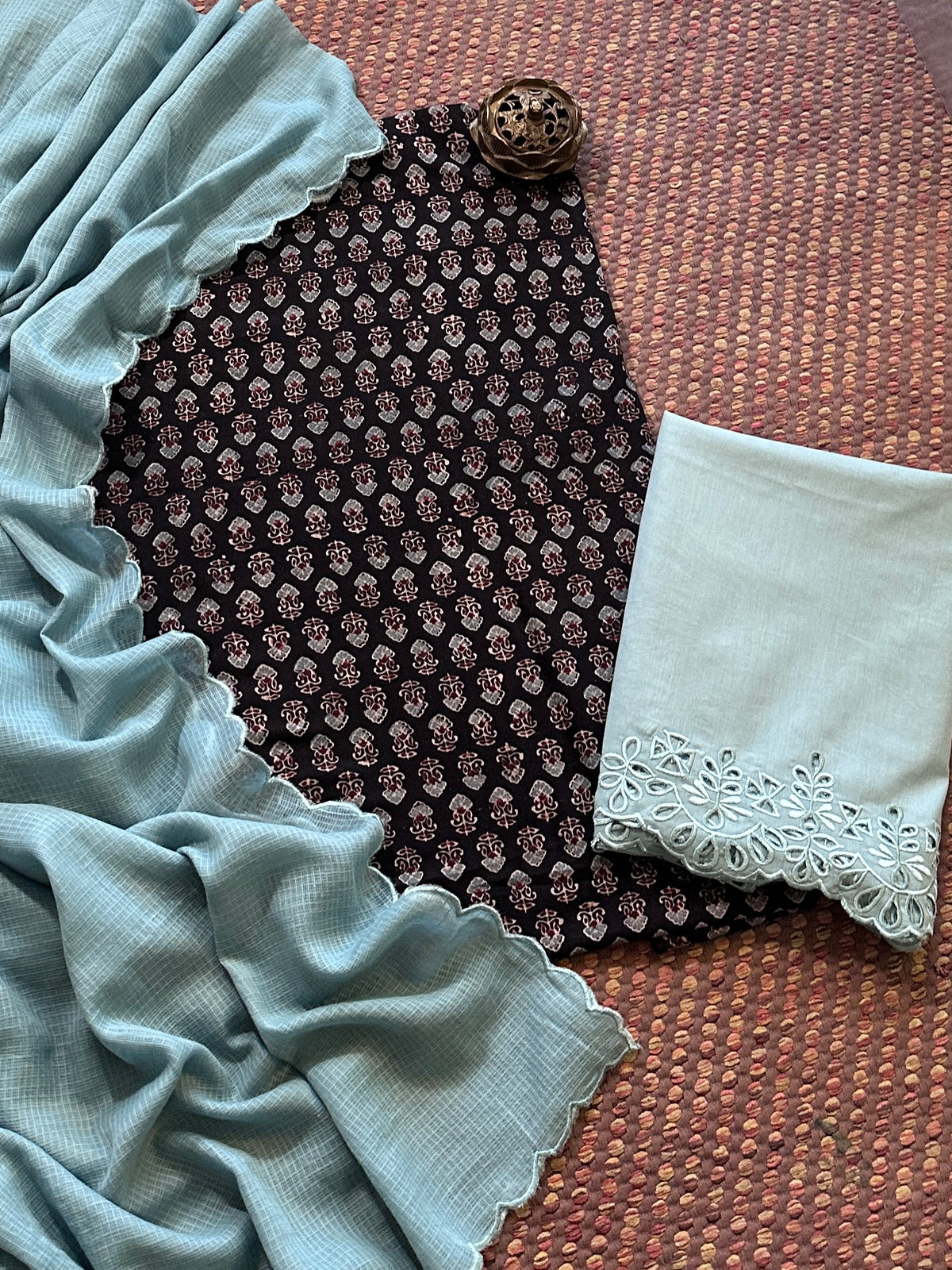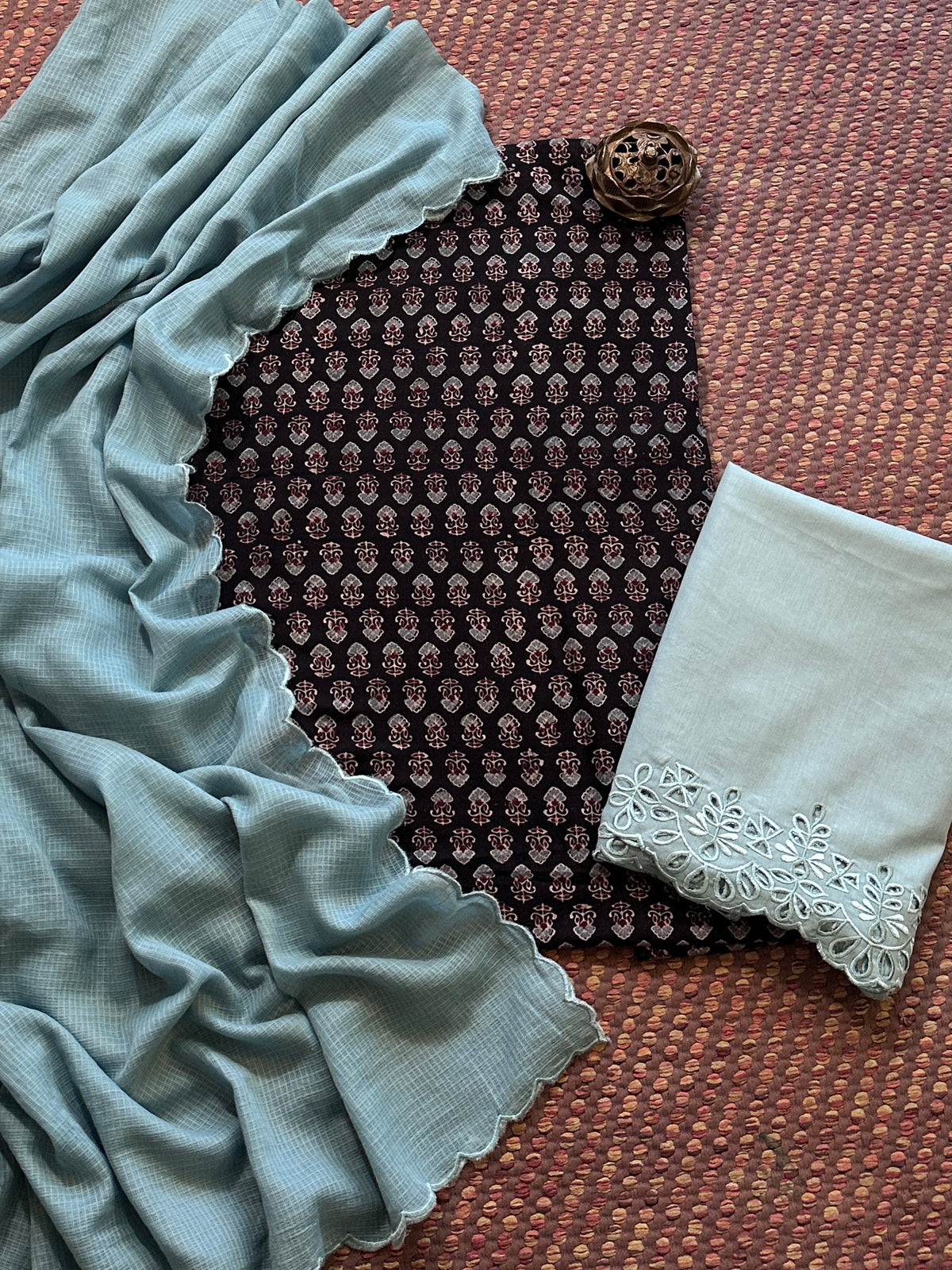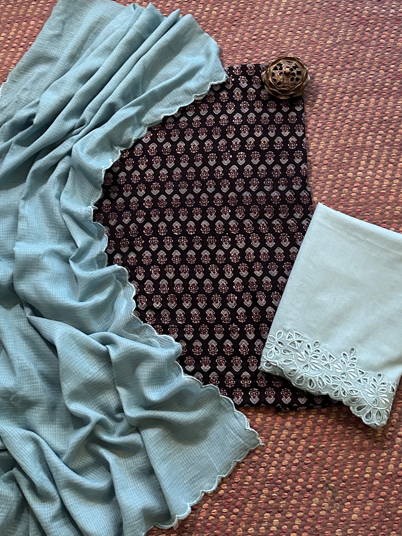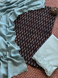 Pure Cotton Mul Ajrak with Scalloped Dupatta & Cutwork Bottom