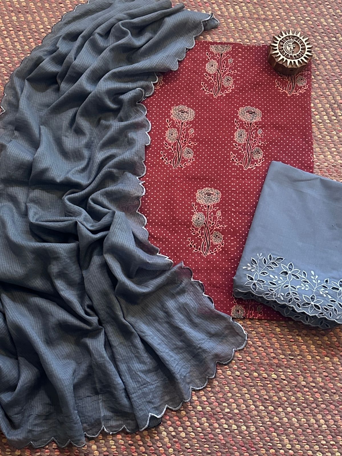 Pure Cotton Mul Ajrak with Scalloped Dupatta & Cutwork Bottom