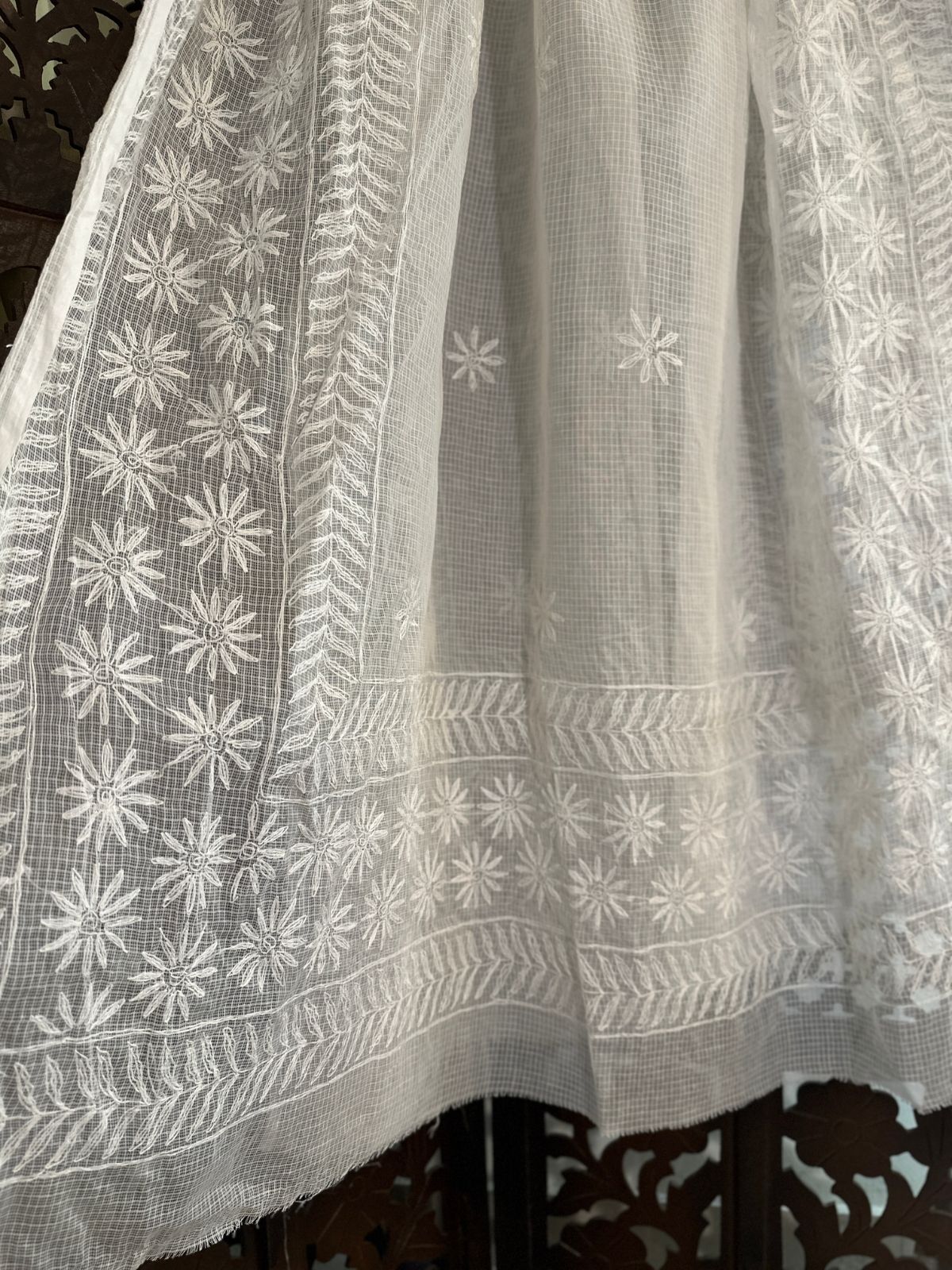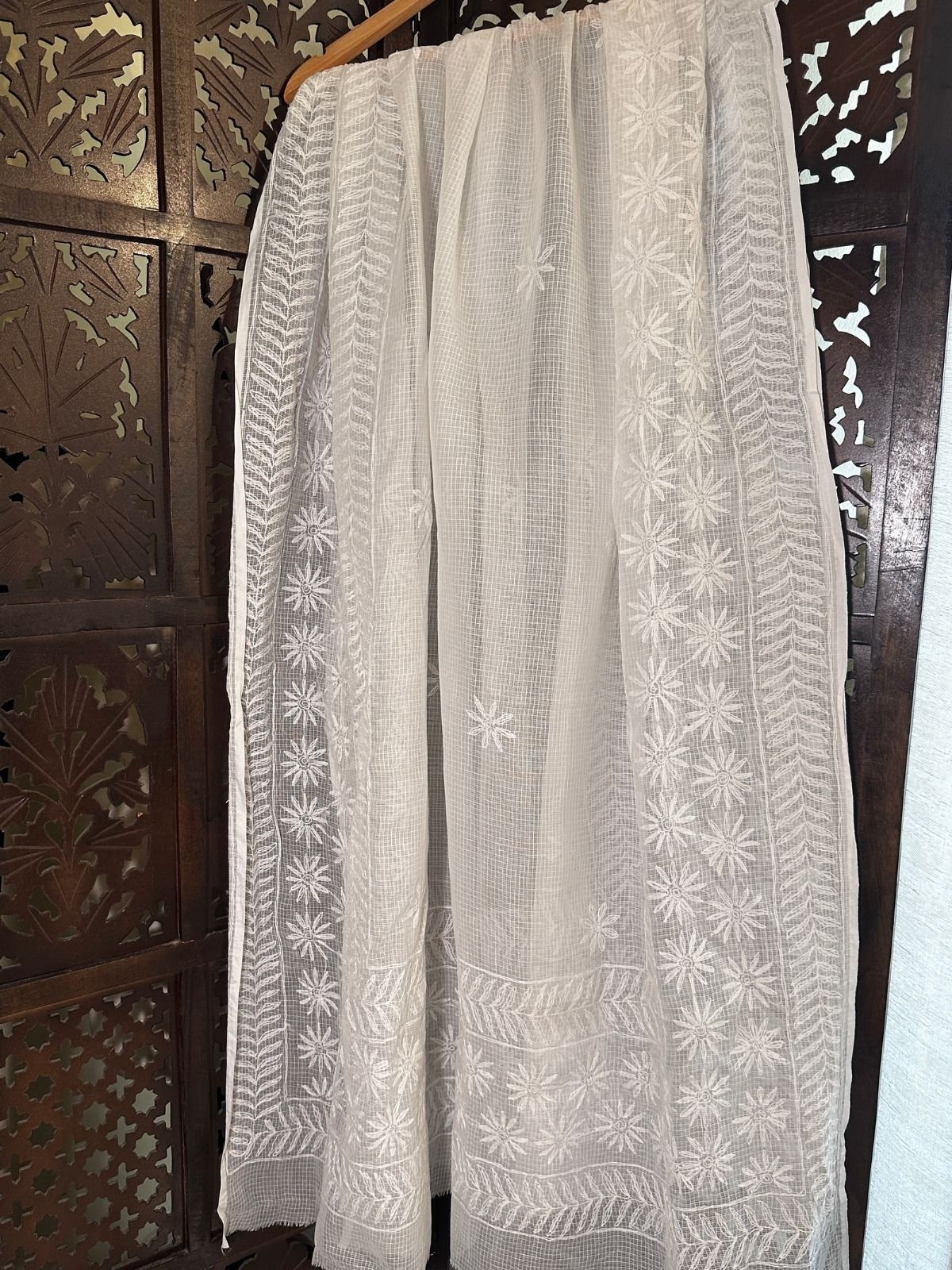 Kota Doria Hand Embroidered Chikankari Dupatta