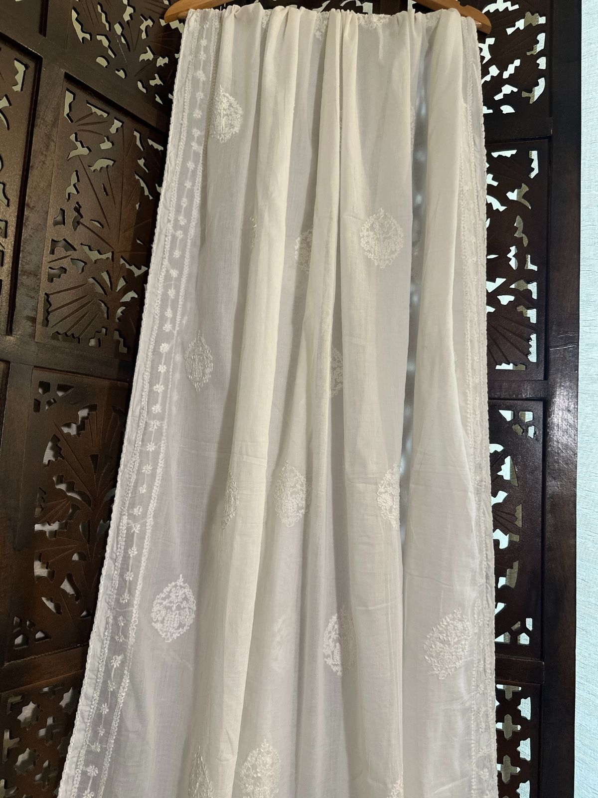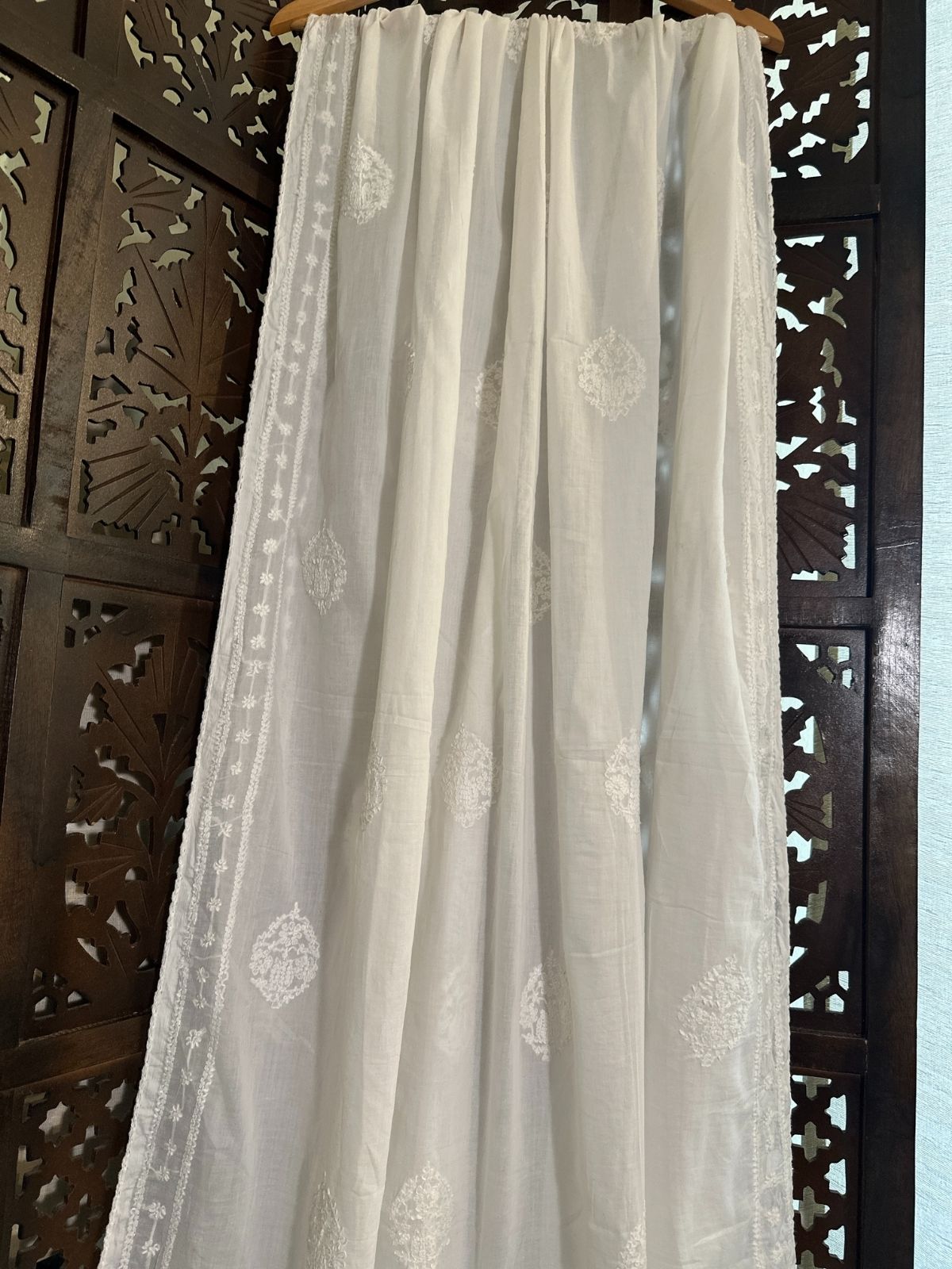 Pure Cotton Malmal Hand Embroidered Chikankari Dupatta