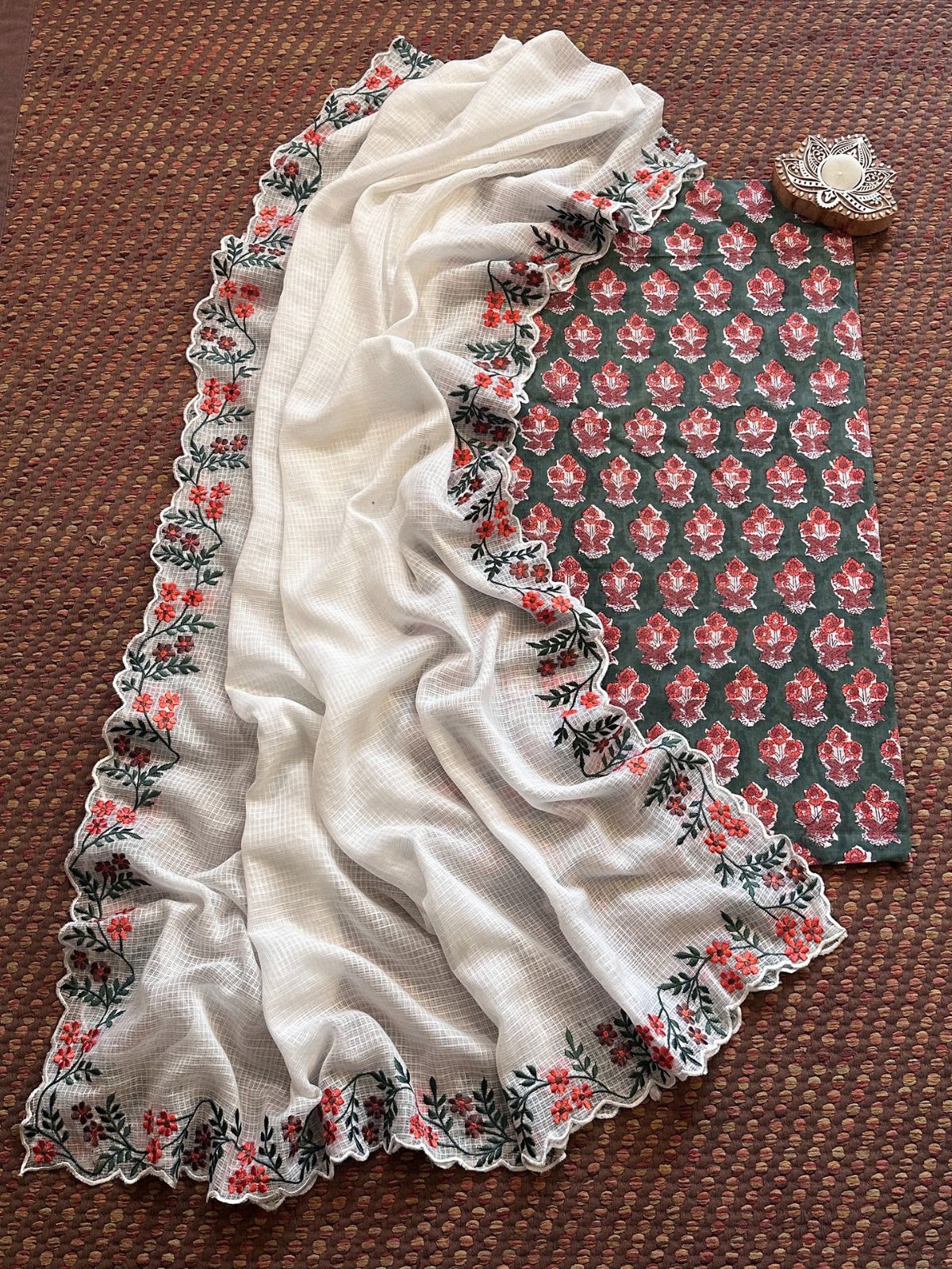 Pure Cotton Handblock Fabric with Exclusive Embroidered Dupatta - Unstitched Fabric Set