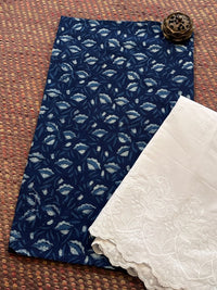Pure Cotton Indigo Handblocked Fabric with Embroidered Bottom