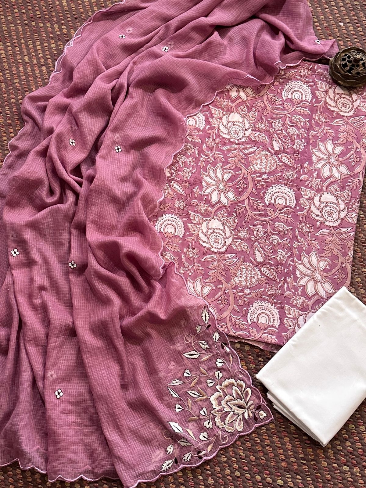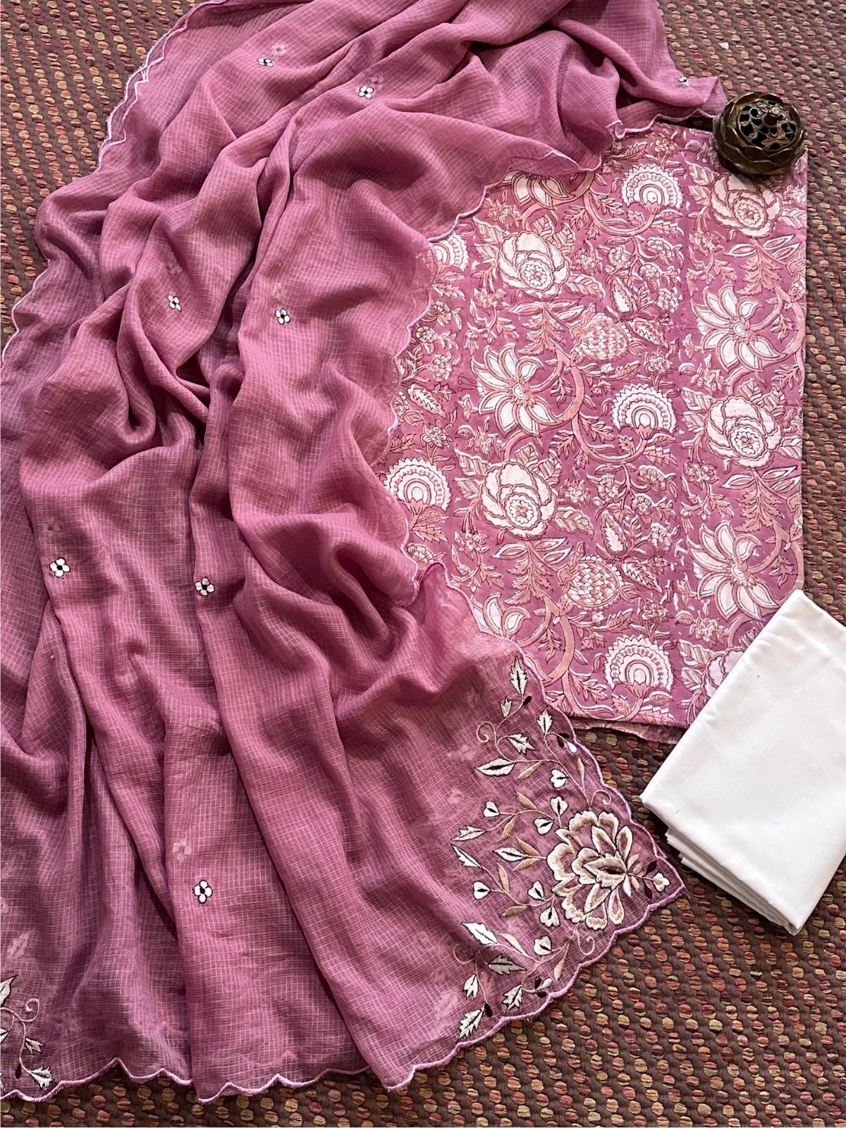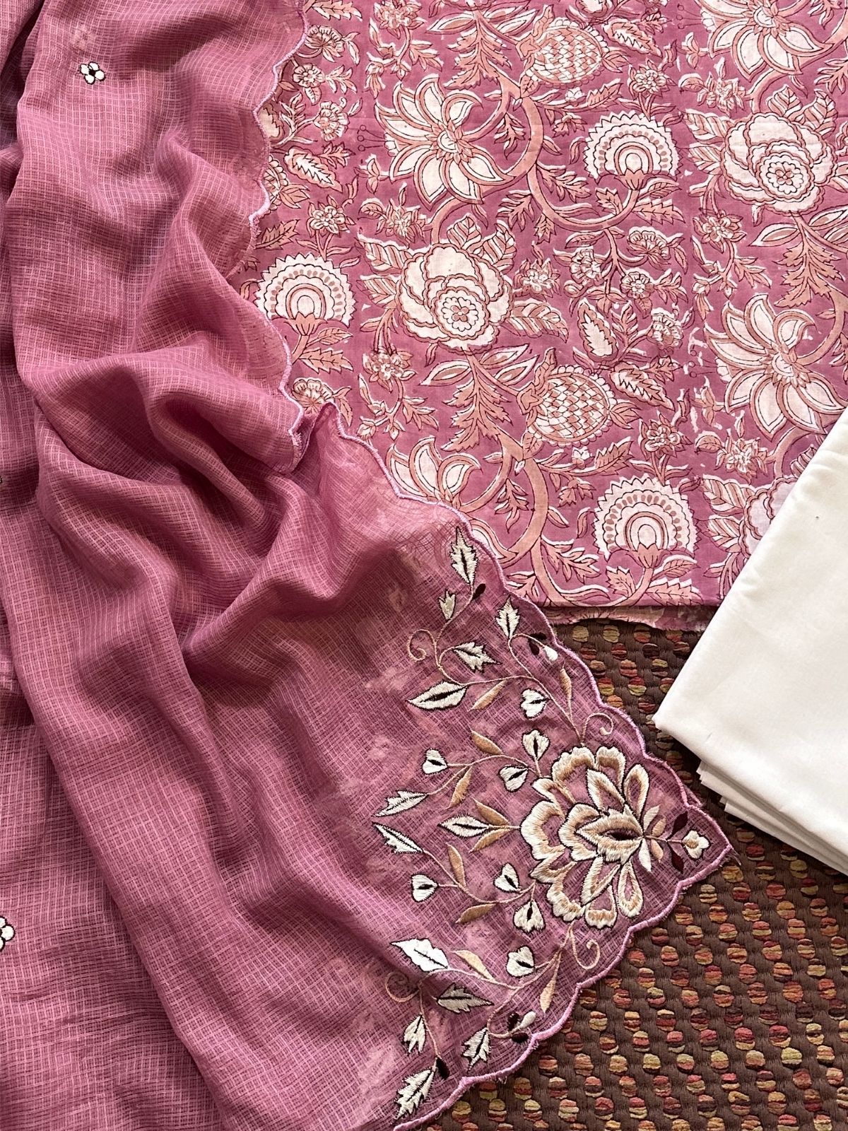 Pure Cotton Hand-blocked Fabric with Embroidered Dupatta