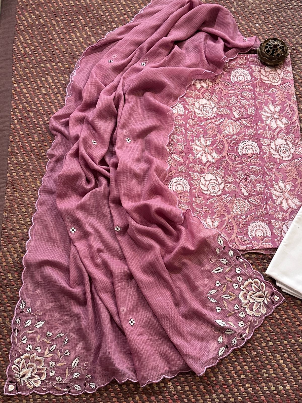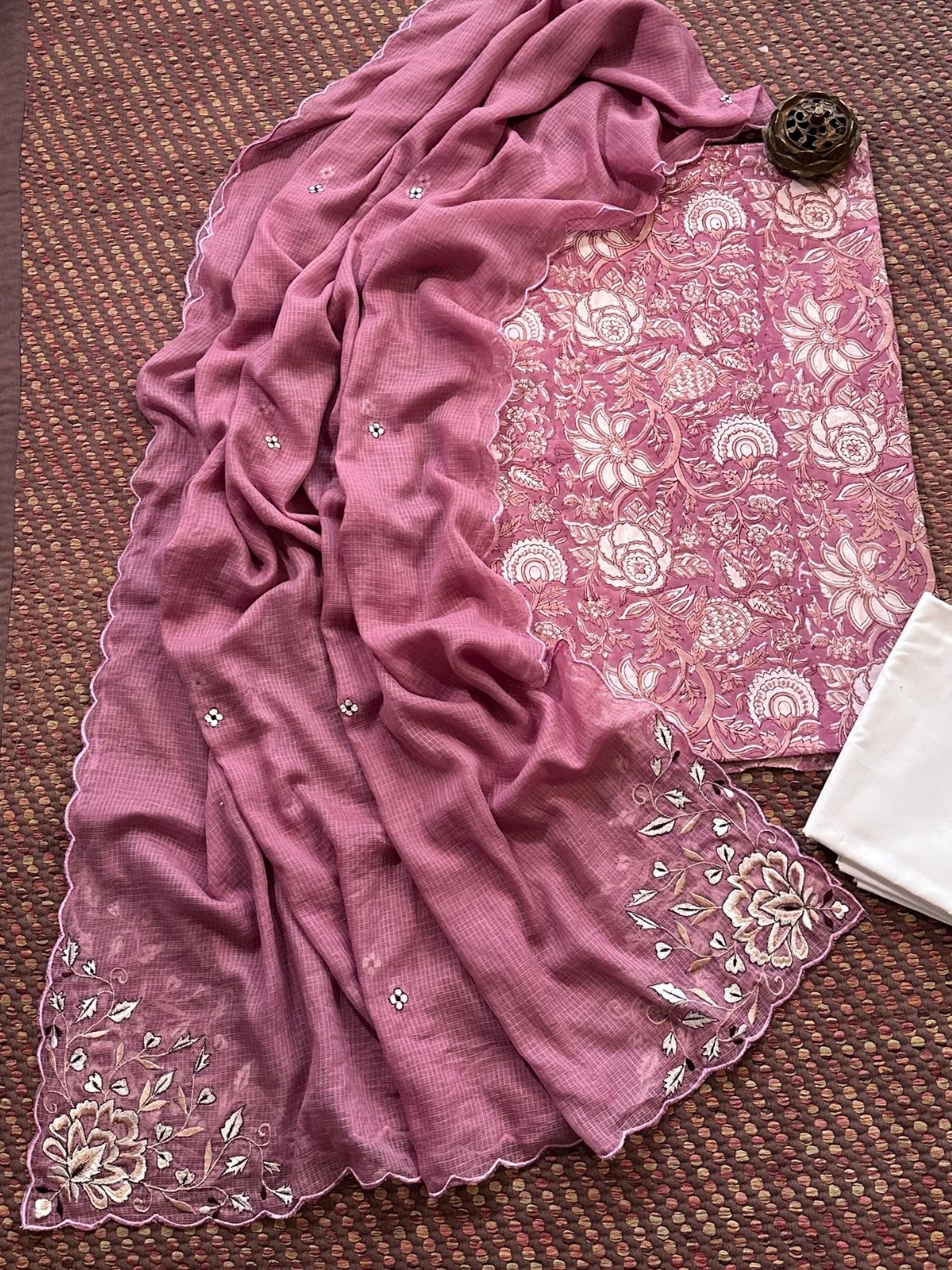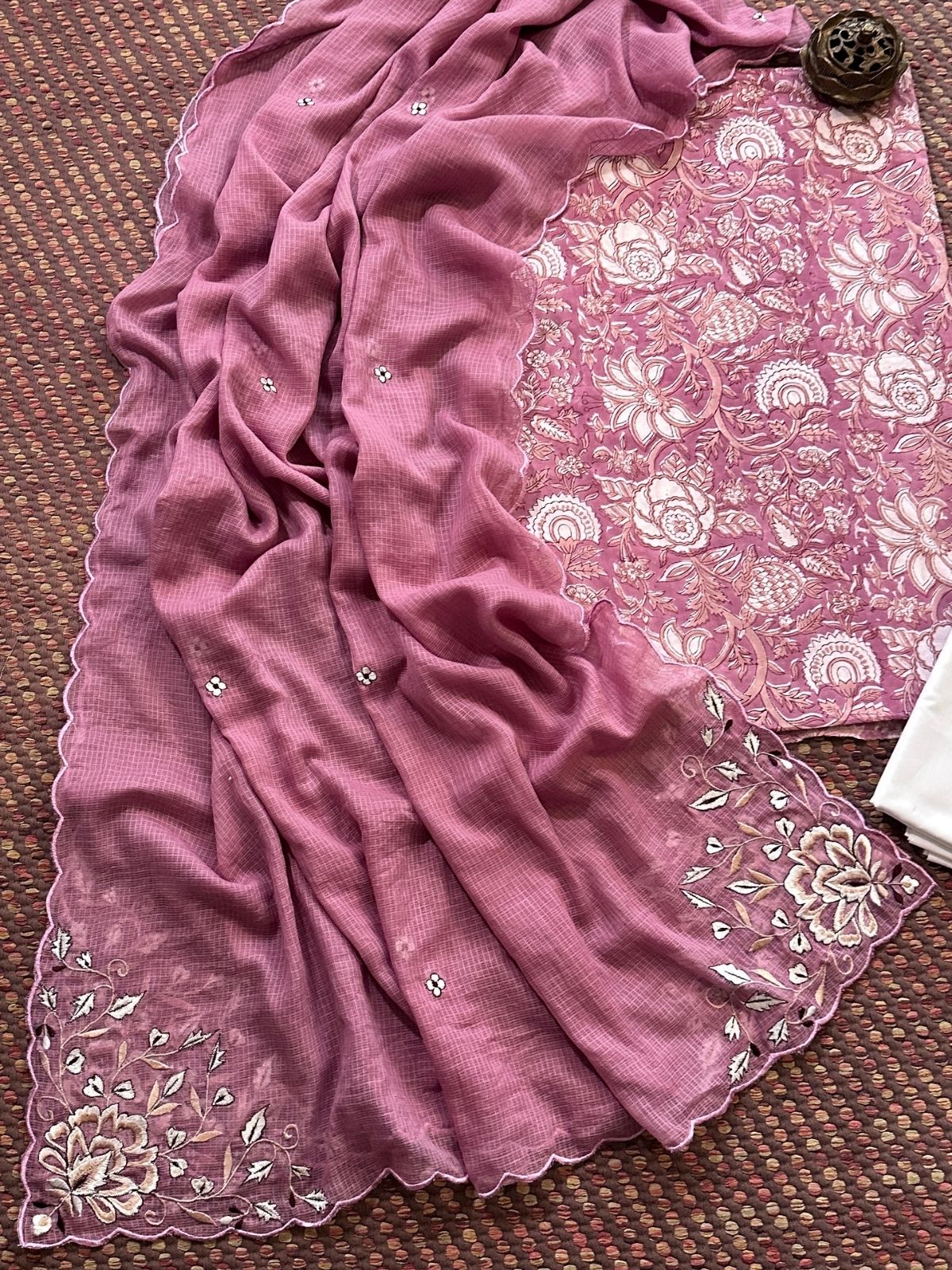 Pure Cotton Hand-blocked Fabric with Embroidered Dupatta
