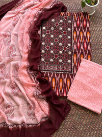 Pure Cotton Handblocked Unstitched Set with Chiffon Dupatta