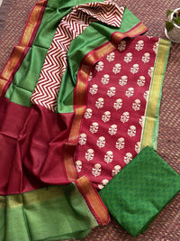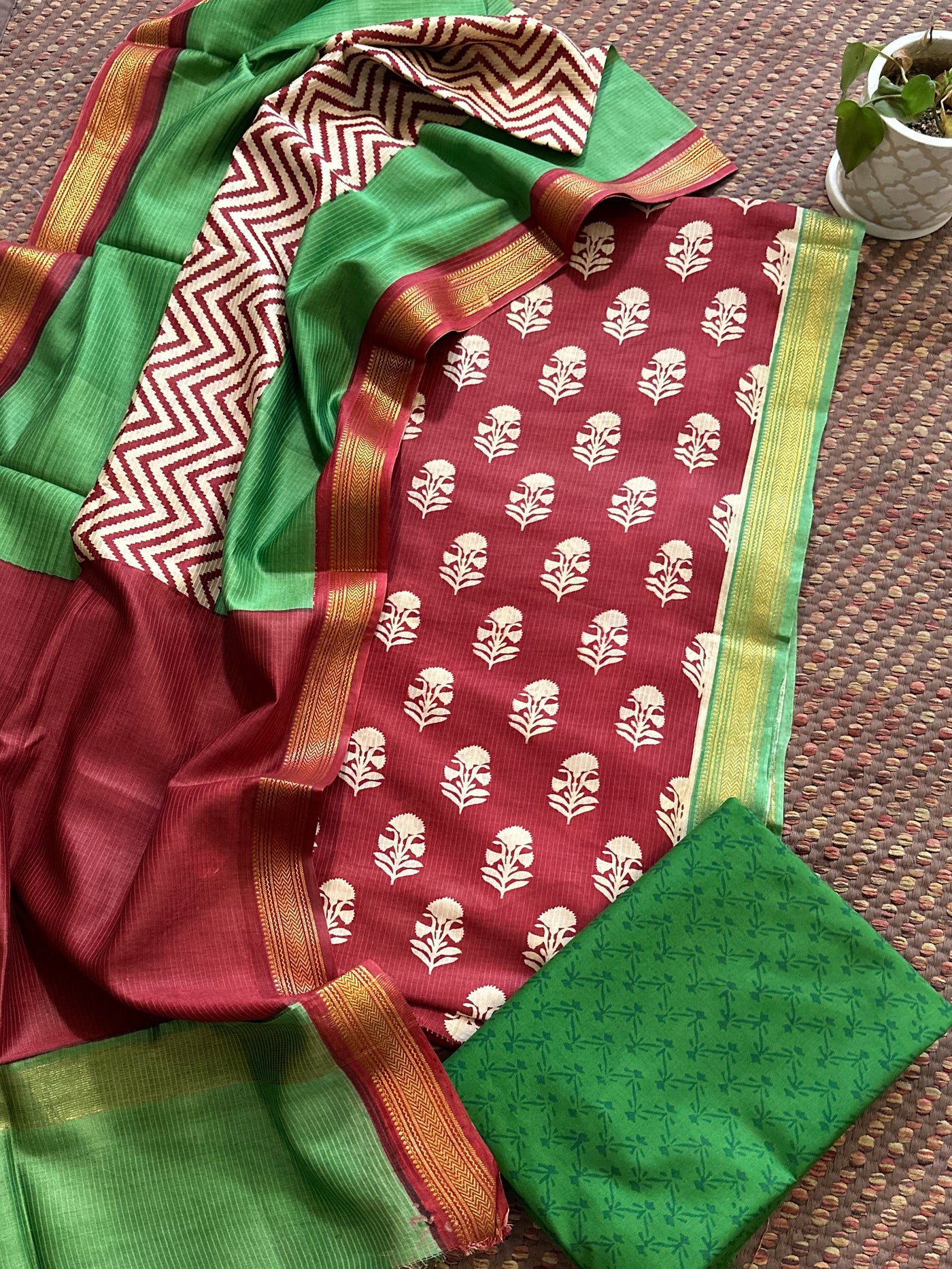 Maheshwari Silk Cotton Handblocked Set - Unstitched Fabric Set