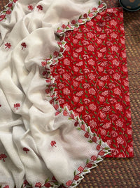 Pure Cotton Hand-blocked fabric with Embroidered Dupatta