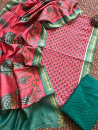Maheshwari Silk Cotton Handblocked Set - Unstitched Fabric Set