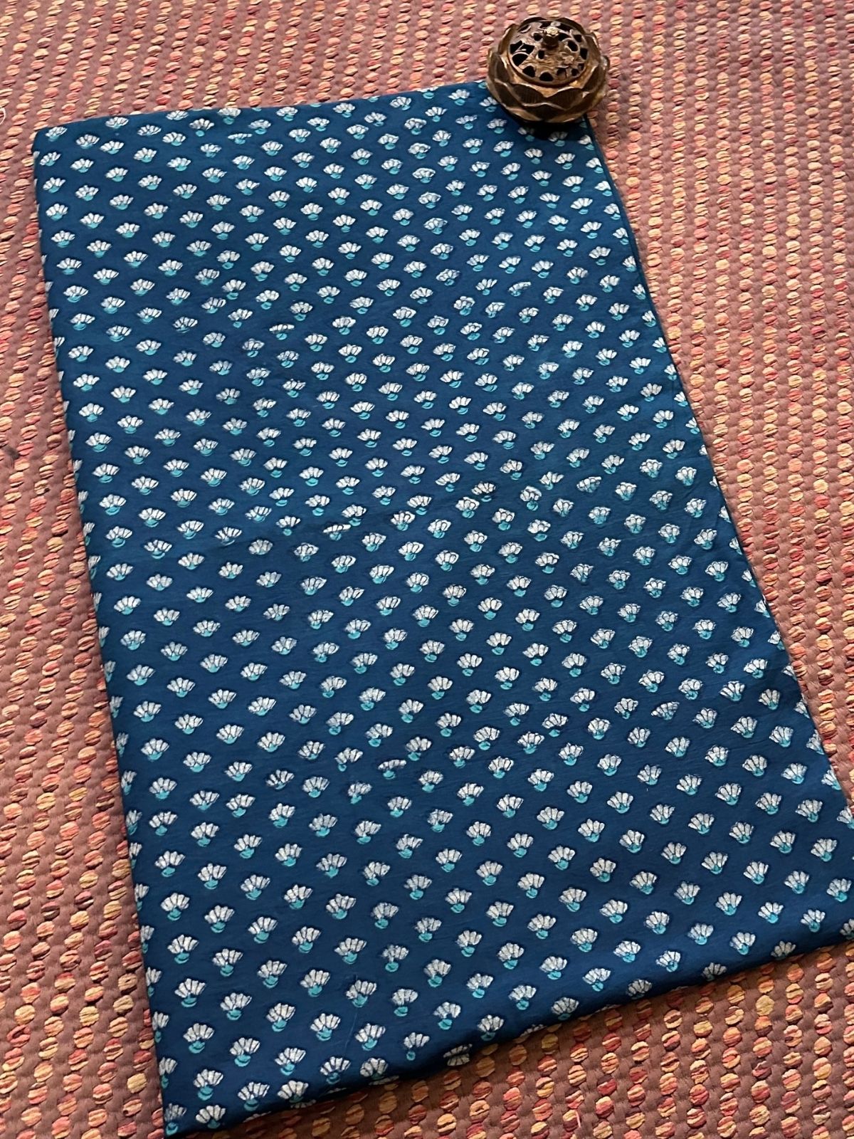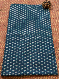Pure Cotton Indigo Handblocked Fabric - 2.5 Meter